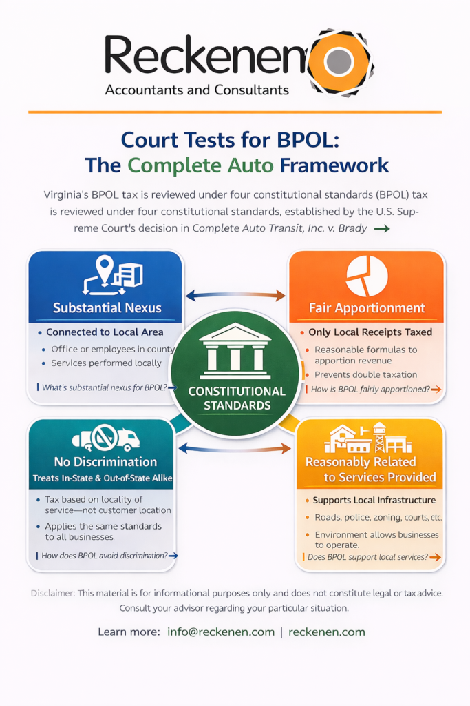 BPOL is simple on the surface and complex in practice. Reckenen helps businesses across Fairfax County and Northern Virginia: